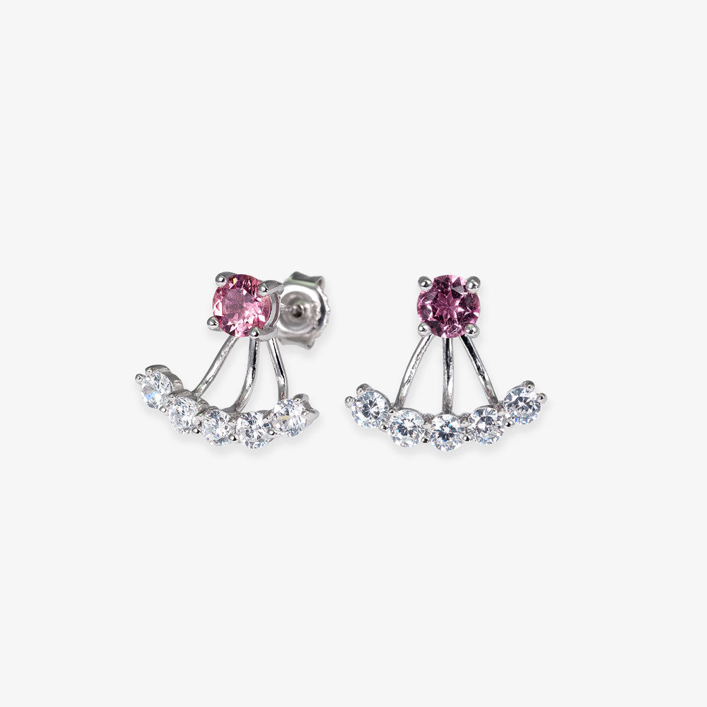 Featuring a 4.5mm pink tourmaline with a detachable rainbow zirconia accent, these earrings offer flexible styling options. The pink tourmaline delivers subtle elegance and durability, while the removable zirconia component allows you to transition from a vibrant two-tone look to understated sophistication.